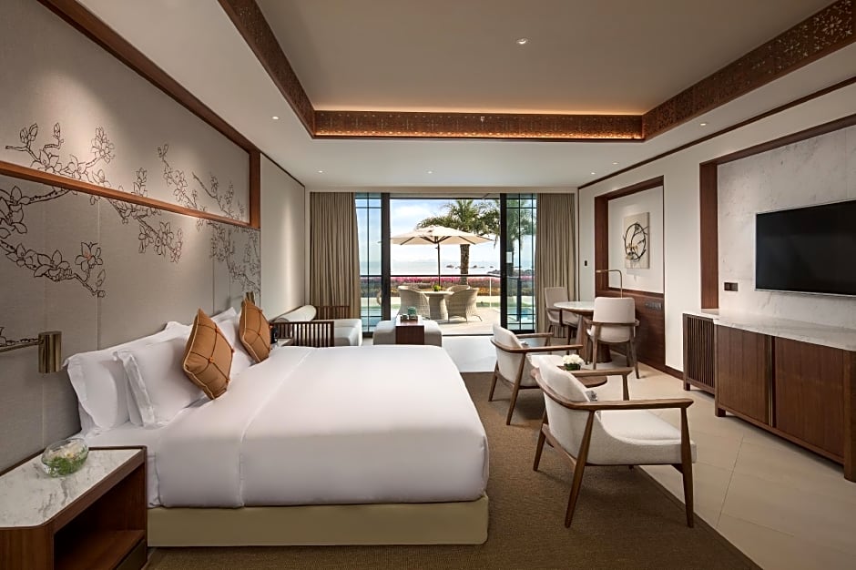 This twin room features a balcony, view and sofa. This twin room has direct access to the canal pool.